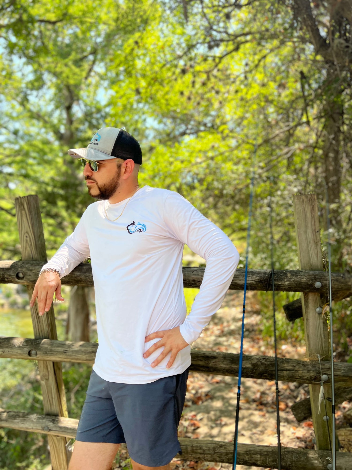 Galilee UPF 50 Long Sleeve White/ Sky Blue Fishing Shirt
